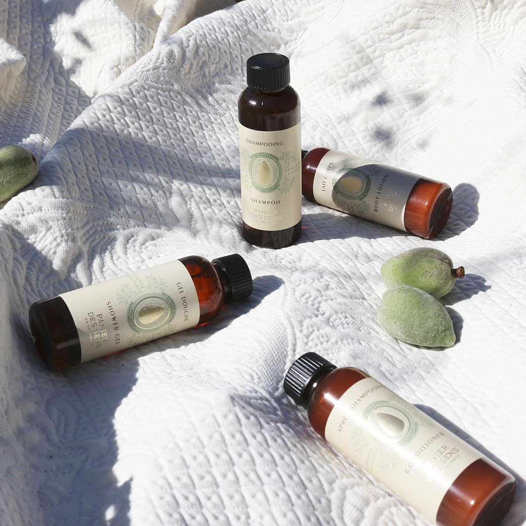 SHOWER GEL: AQUA (WATER) / SODIUM COCETH SULFATE / SODIUM CHLORIDE / COCAMIDOPROPYL BETAINE / CITRIC ACID / SODIUM LAUROYL GLUTAMATE / PARFUM (FRAGRANCE) / SODIUM BENZOATE / POTASSIUM SORBATE / COCO-GLUCOSIDE / GLYCERYL OLEATE / LIMONENE / BENZYL ALCOHOL / SODIUM GLUCONATE / GLYCERIN / PRUNUS AMYGDALUS DULCIS (SWEET ALMOND) FRUIT EXTRACT / HYDROLYZED RICE PROTEIN. SHAMPOO : AQUA (WATER) / SODIUM COCETH SULFATE / SODIUM CHLORIDE / COCAMIDOPROPYL BETAINE / CITRIC ACID / SODIUM LAUROYL GLUTAMATE / PARFUM (FRAGRANCE) / SODIUM BENZOATE / POTASSIUM SORBATE / COCO-GLUCOSIDE / GLYCERYL OLEATE / SODIUM GLUCONATE / LIMONENE / BENZYL ALCOHOL / GLYCERIN / PRUNUS AMYGDALUS DULCIS (SWEET ALMOND) FRUIT EXTRACT / COCODIMONIUM HYDROXYPROPYL HYDROLYZED WHEAT PROTEIN / DICAPRYLYL ETHER / LAURYL ALCOHOL. CONDITIONER : AQUA (WATER) / CETEARYL ALCOHOL / CETRIMONIUM CHLORIDE / PARFUM (FRAGRANCE) / BENZYL ALCOHOL / PRUNUS AMYGDALUS DULCIS (SWEET ALMOND) OIL / LIMONENE / GLYCERIN / CITRIC ACID / PRUNUS AMYGDALUS DULCIS (SWEET ALMOND) FRUIT EXTRACT / POTASSIUM SORBATE / SODIUM BENZOATE. BODY LOTION AQUA (WATER) / GLYCERIN / CETEARYL ALCOHOL / PRUNUS AMYGDALUS DULCIS (SWEET ALMOND) OIL / SODIUM STEAROYL LACTYLATE / GLYCERYL STEARATE / PARFUM (FRAGRANCE / SODIUM BENZOATE / XANTHAN GUM / BENZYL ALCOHOL / SODIUM GLUCONATE / LIMONENE / PRUNUS AMYGDALUS DULCIS (SWEET ALMOND) FRUIT EXTRACT / CITRIC ACID / POTASSIUM SORBATE.